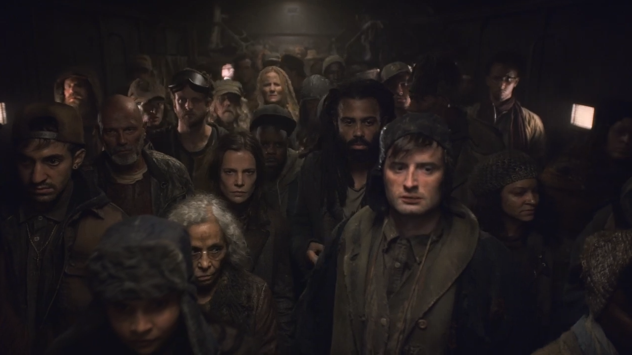 그리고 6년 9개월이 지난 시점부터 이야기가 시작되는데, 꼬리칸에서 폭동을 준비하고 있습니다. 남자주인공 레이턴은 폭동에 신중한 모습을 보이는데, 탑승 후 3년이 된 시점에도 폭동을 일으켰지만, 문에 막혀 실패했기 때문에 앞쪽 칸의 도움 없이 성공 가능성이 낮다는 게 이유입니다. 꼬리칸 동료들은 소극적이라며 비난을 하죠.
