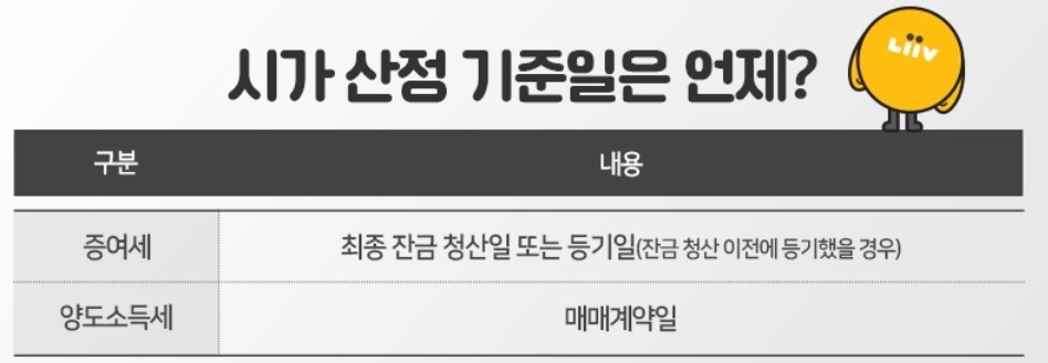 증여세는 최종 잔금 청산일, 양도소득세는 매매계약일을 기준으로 시가를 산정합니다.