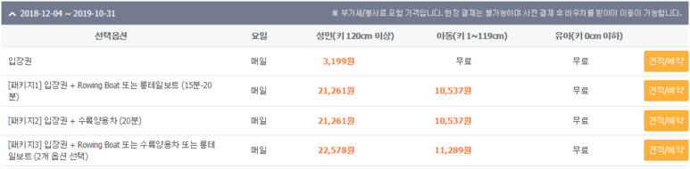 저희는 여행사에서 바우처를 미리 구입했는데요. 구입한 바우처를 입구에 보여주면 티켓으로 교환해 줍니다. 그리고 지도를 보여주면서 매우 친절히 전체 코스를 설명해 줍니다. 현지인이 어색한 영어로 설명해 주지만, 알아 듣는데 큰 무리가 없습니다. 아래 바우처 요금표인데요. 키를 그렇게 엄격하게 보는 것 같진 않습니다. 적당히 하세요.