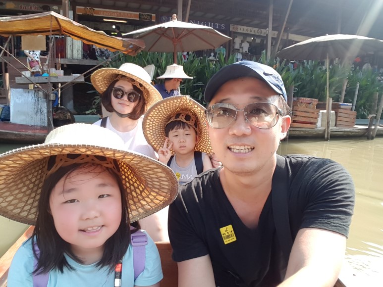 큰 배를 타고 내리면 노 저어 가는 작은 배를 탈 수 있는 곳에 내려 줍니다. 저희가 갔을 때는 관광객들이 많아서 30분 정도 기다렸던 것 같습니다. 날씨가 무척 더웠지만 맛있는 망고 아이스크림으로 더위를 달랬습니다. 아쉽게 사진이 없네요. 너무 더워서 '사진이고 뭐고 모르겠다'였습니다. 애들도 더위에 많이 지친 표정이네요. 작은 배를 20~30분 정도 탄 것 같은데요. 사진 속에 있는 모자를 주지만, 양산도 들고 가시는 게 좋을 거에요. 햇살이 엄청 뜨겁습니다.