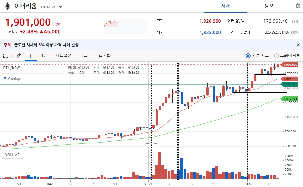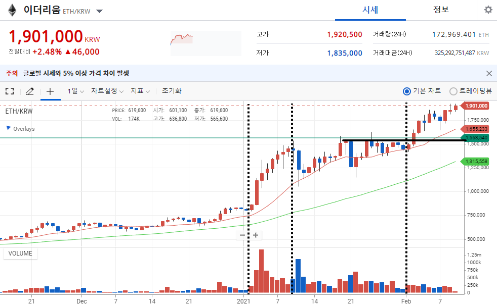 2월 2일에 전고점 15백만원을 돌파한 후 계속해서 상승 중인데요.