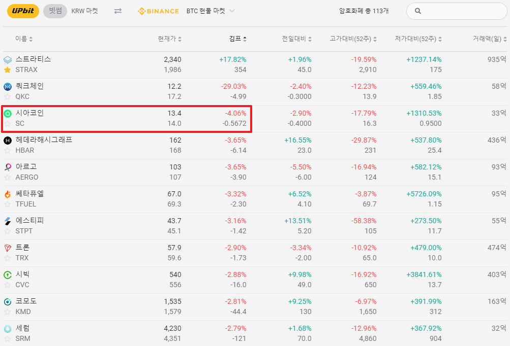 자 다음은 김프, 역프 거래에서 가장 큰 문제인데요. 역프 2등 코인 시아코인으로 한 번 살펴 보시죠.