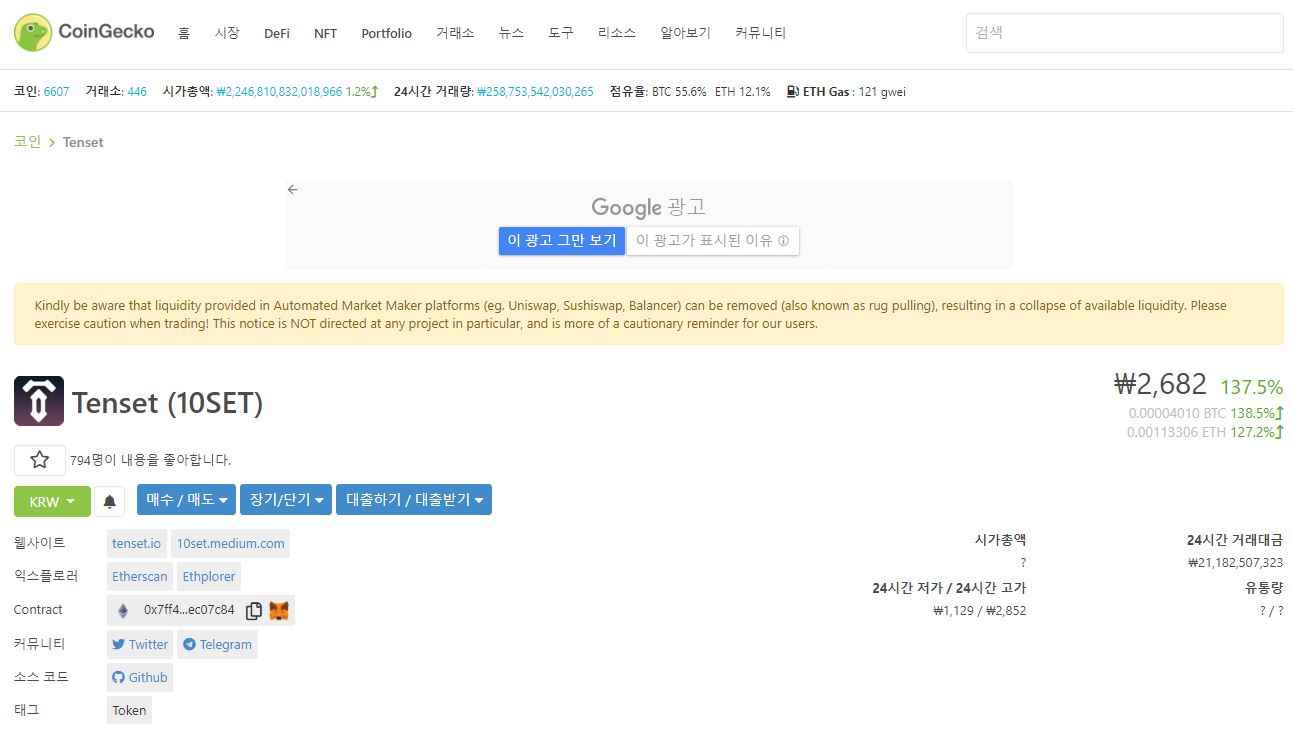 #텐셋 #10set #TensetGoToTheMoon #Tenset #코인마켓캡 #코인게코 #CMC #CoinMarketCap #블록폴리오