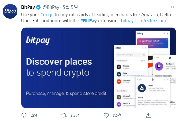 지금까지 얘기들은 상상에 불과한 얘기들이었지만, 도지코인이 결제에 적용되는 사례들이 늘어나고 있는데요. 특히 Bitpay에서 적극적으로 활용범위를 넓히고 있는 것 같습니다.