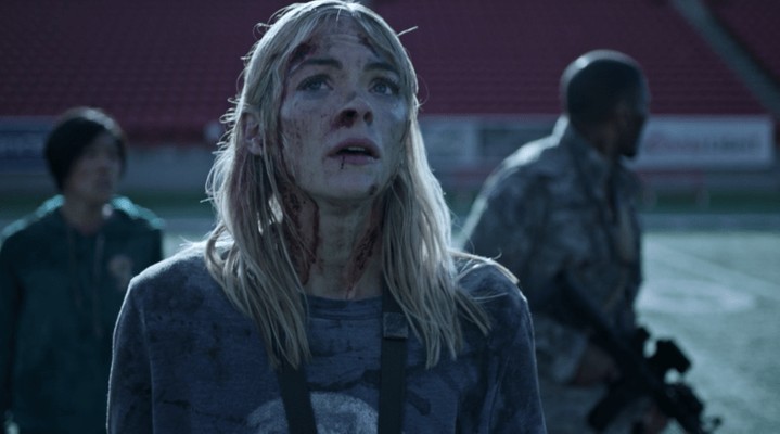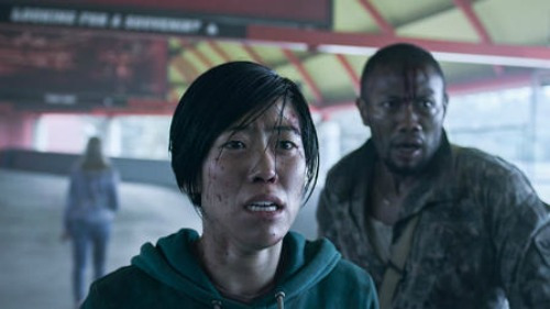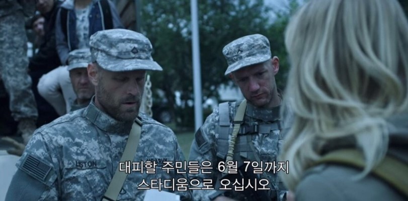 스타디움까지 걸어서 가기에는 불가능한 거리이기 때문에 자동차와 연료 쟁탈전이 벌어집니다. 쟁탈전을 벌이며 많은 사람들이 죽고 좀비로 변합니다. 3명, 2명, 3명이 각각 그룹으로 활동하다가 결국 모두 모여 팀을 이룹니다. 이 중 한 명이 한국 배우입니다. 처음보는 배우였는데요. 영어 못 하는 한국 사람이라는 설정으로 계속 한국말을 합니다. 바디랭귀지로 대충 의사소통은 된다는 설정인데요. 배 고파서 두만강을 건넜다는 얘기로 미루어 북한 사람인데, 말투는 그냥 남한 사람입니다(옥의 티). 한국말이 계속 나오니 신기하고 반갑더라고요.