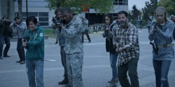 결국 시내에서 좀비와의 대혈투 끝에 스타디움에 도착하게 됩니다. 몇 명은 죽고 4명인가 남았습니다. 죽을 고생을 해서 도착했더니 이송된 생존자들이 아무도 보이지 않습니다. 당황하고 있는 중 저 멀리서 총을 들고 있는 뚱뚱한 사람 뒤로 딸이 나타나면서 시즌 1이 끝납니다.
