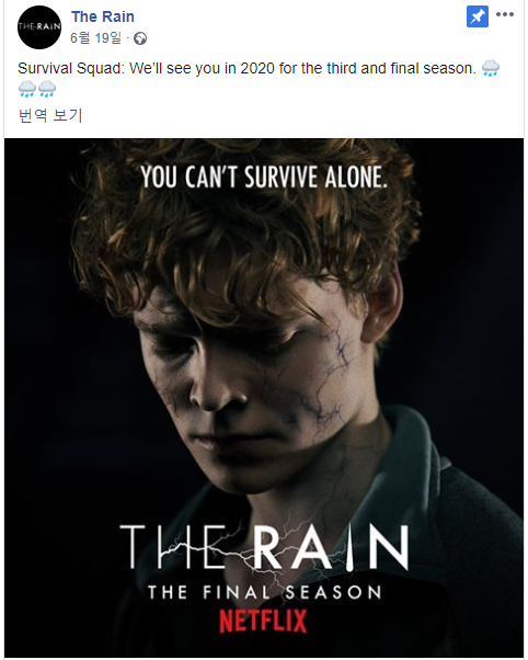 시즌 3은 괴물일지 히어로가 될지...막강 생명체가 탄생하면서 장르변경이 예상되는 데요. 레인 공식 페북에서 내년 시즌 3이 마지막이라고 공표를 한 상황이라 어떻게 마무리 될지 상당히 궁금합니다.